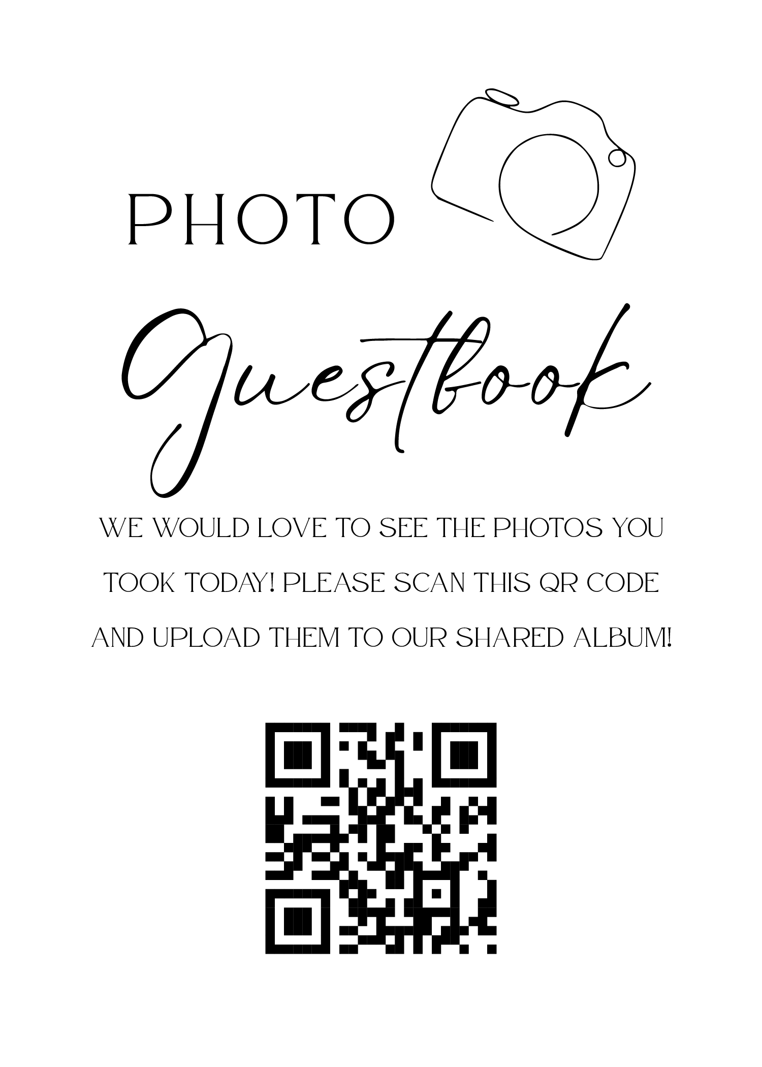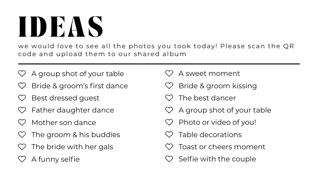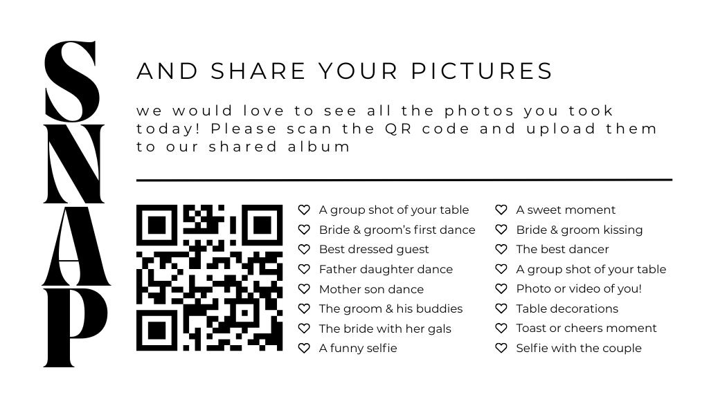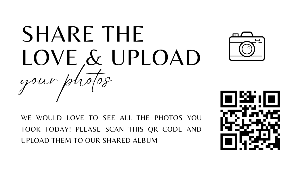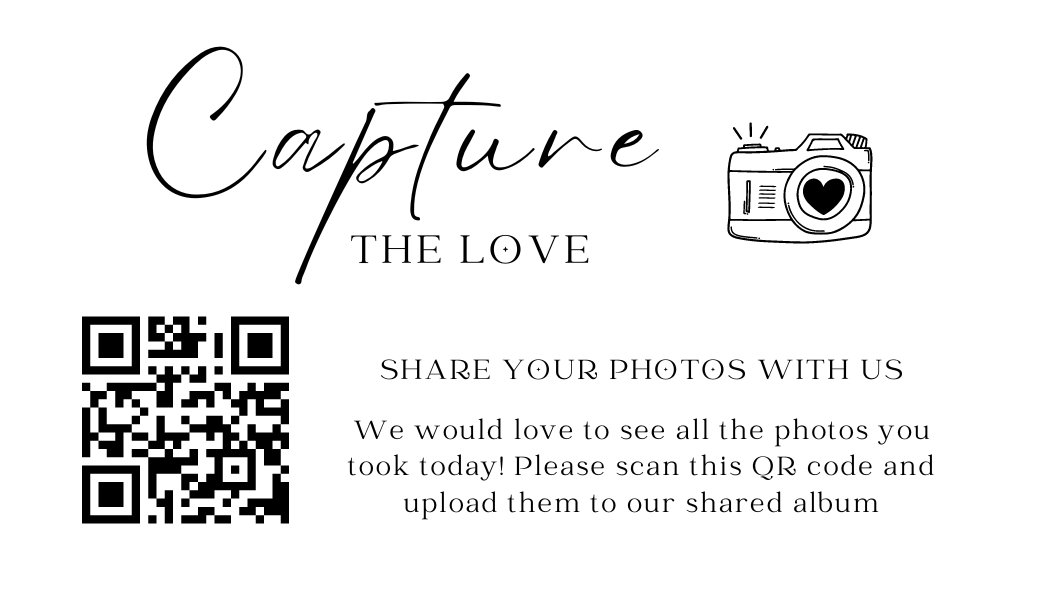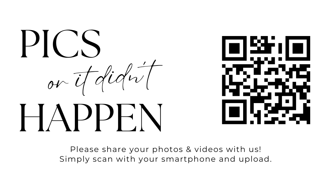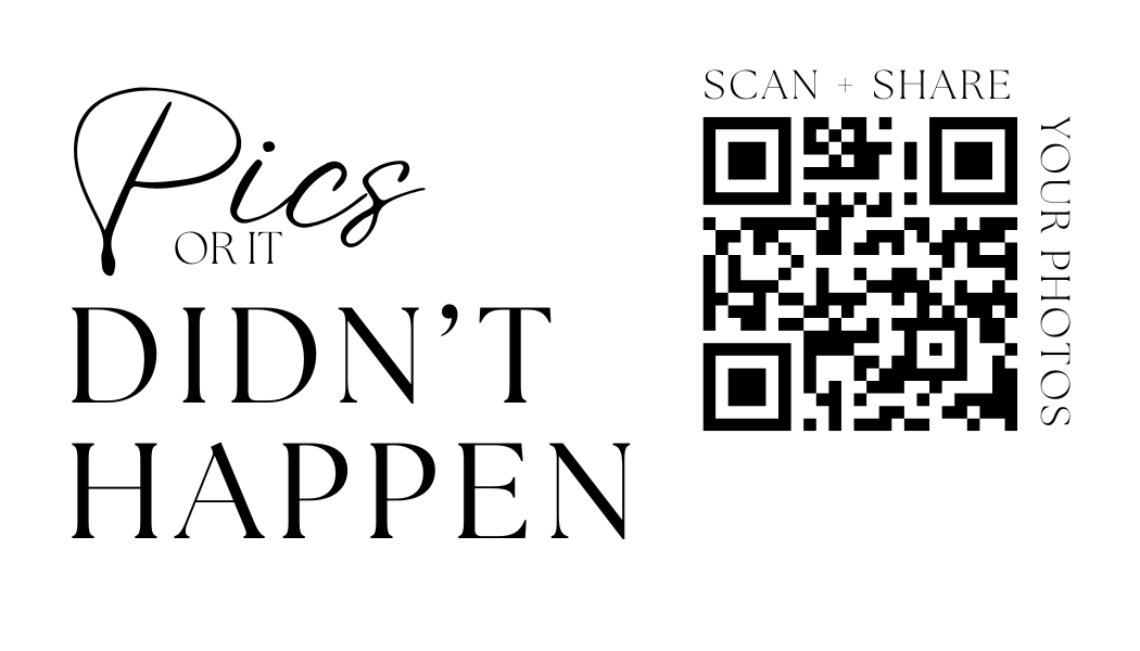 Make it easy for guests to scan your wedding QR code with stylish tabletop signs. Perfect for placing on welcome tables, at the bar, or beside your guestbook station.