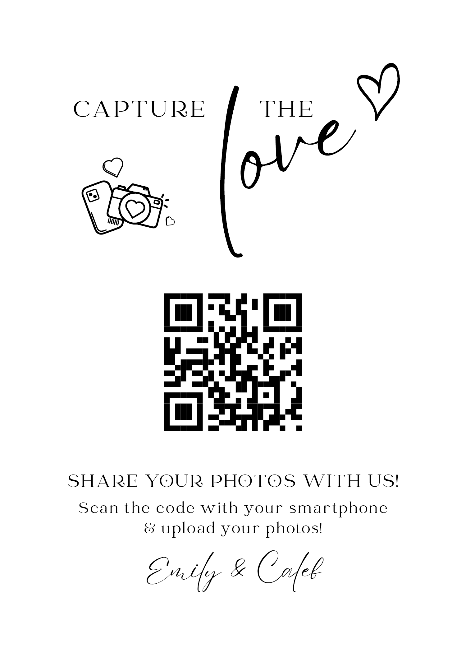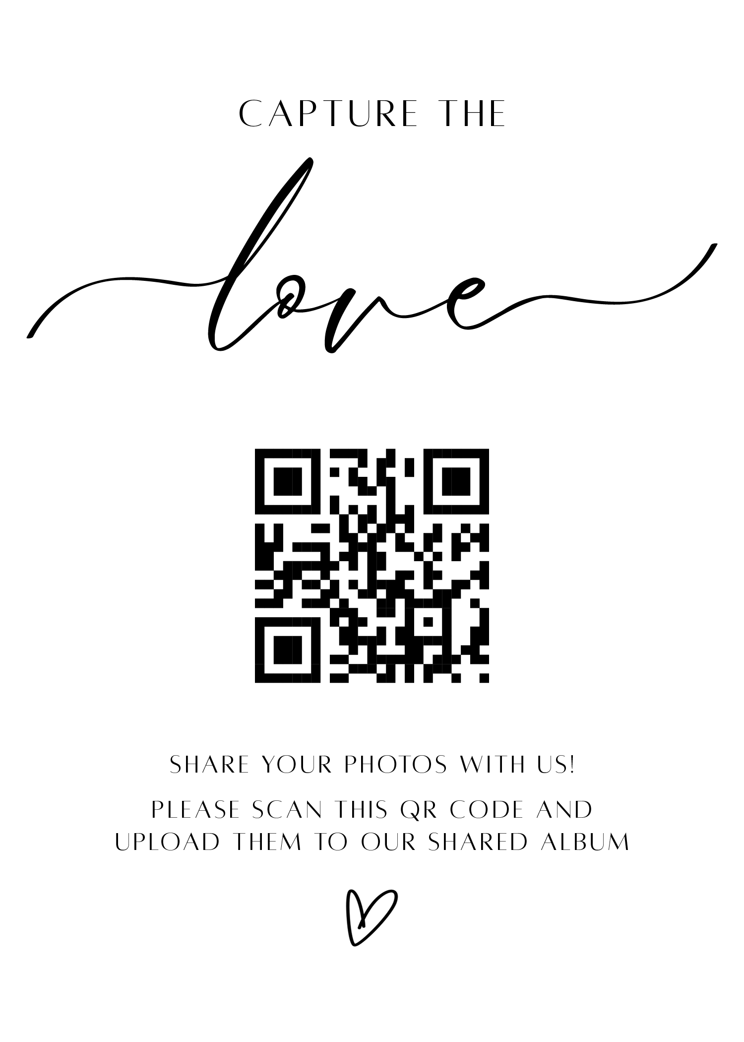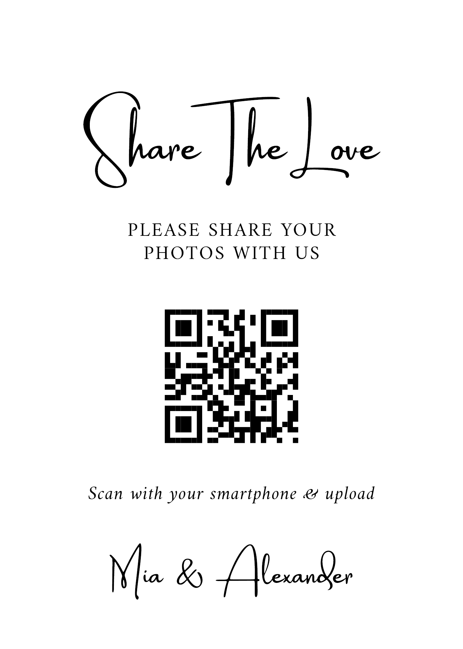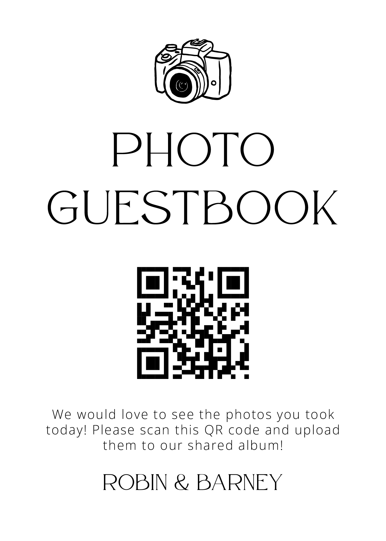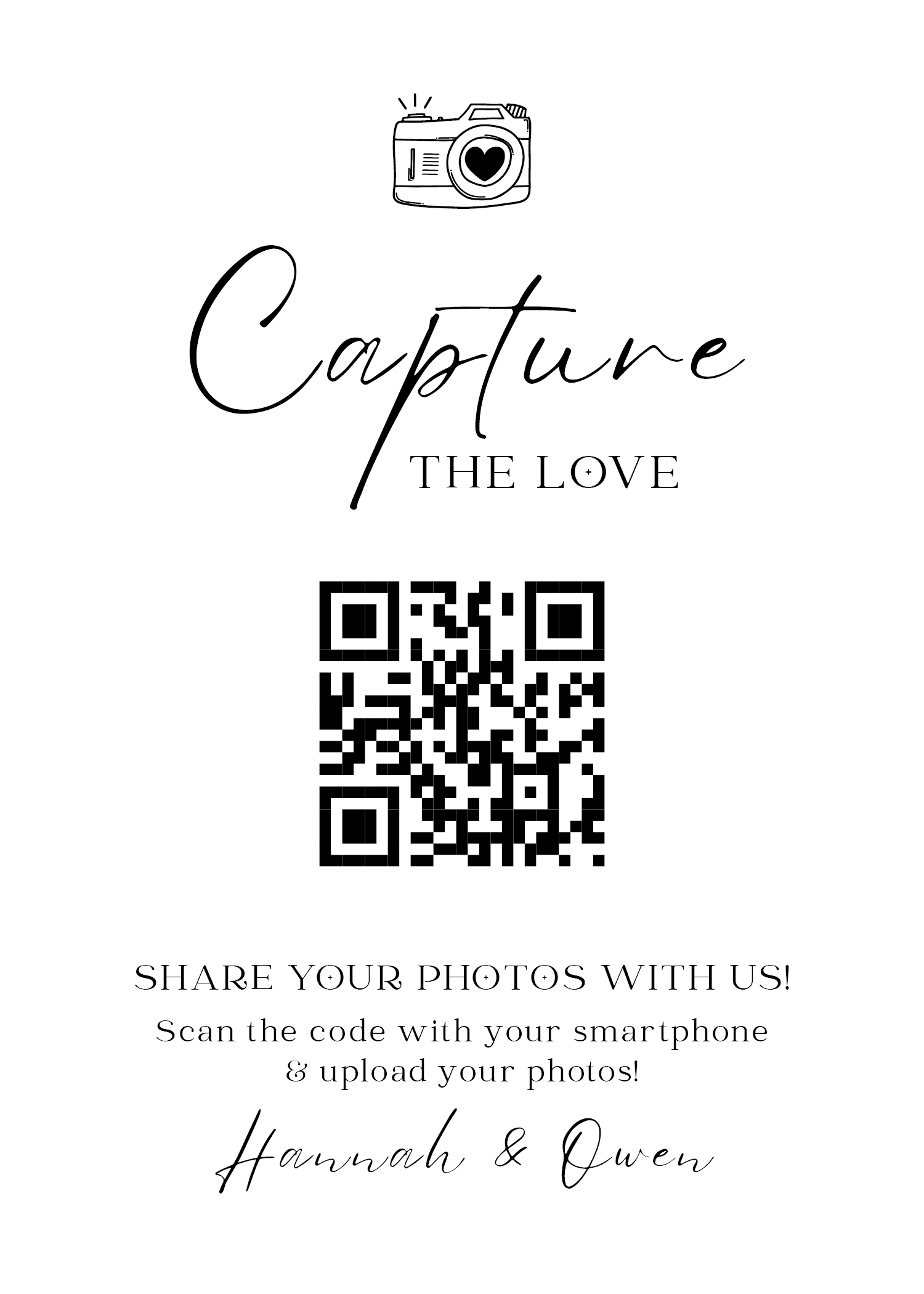 Make it easy for guests to scan your wedding QR code with stylish tabletop signs. Perfect for placing on welcome tables, at the bar, or beside your guestbook station.