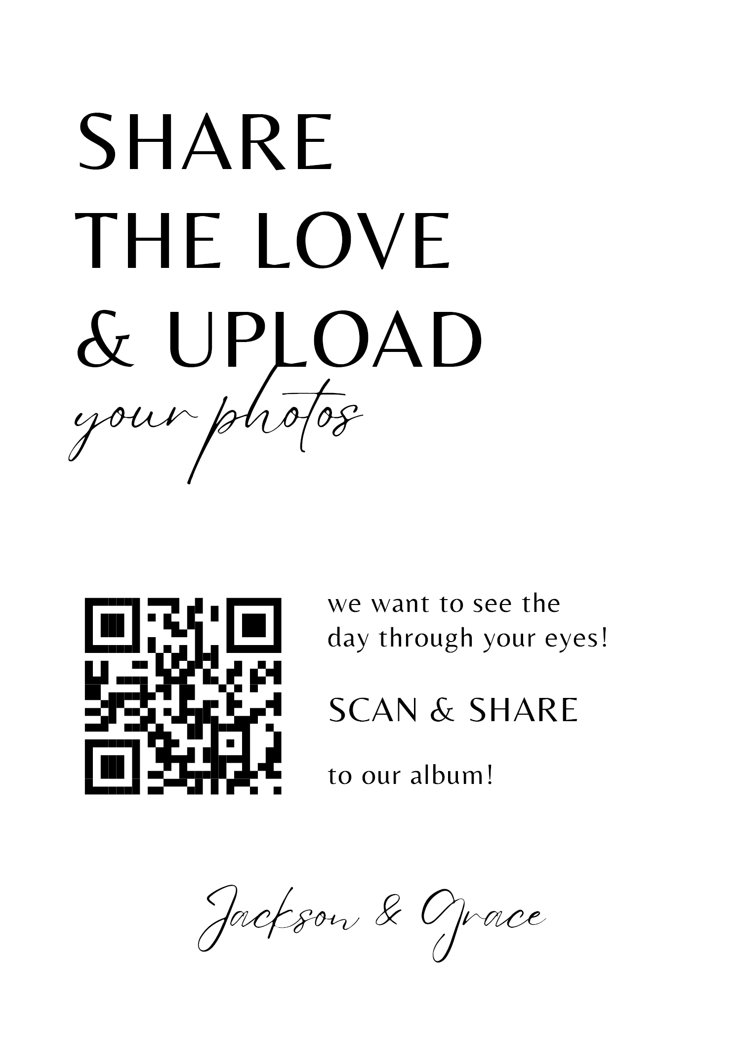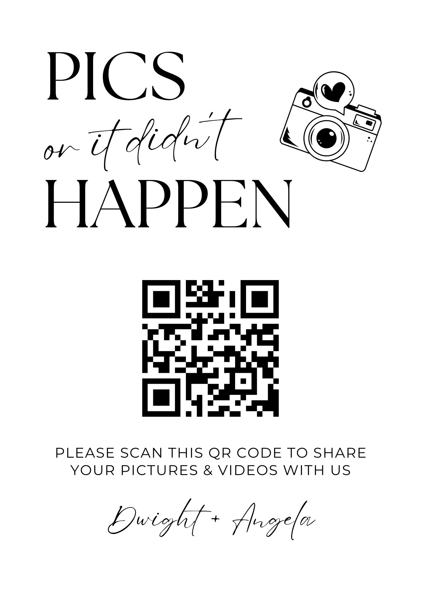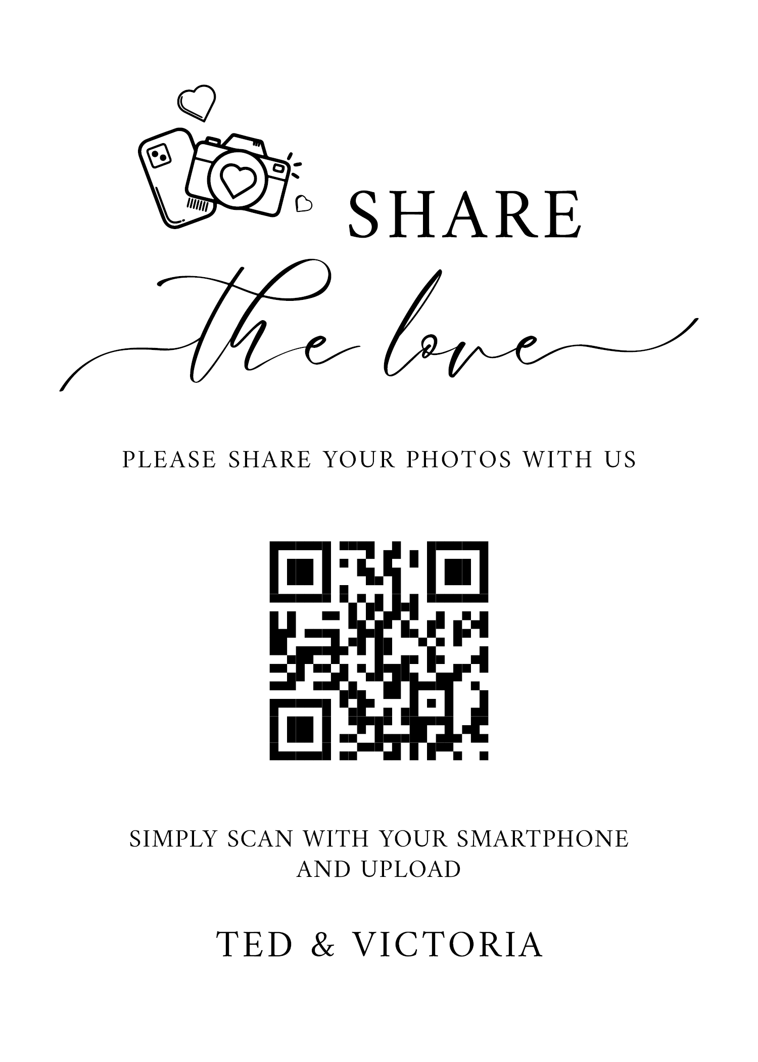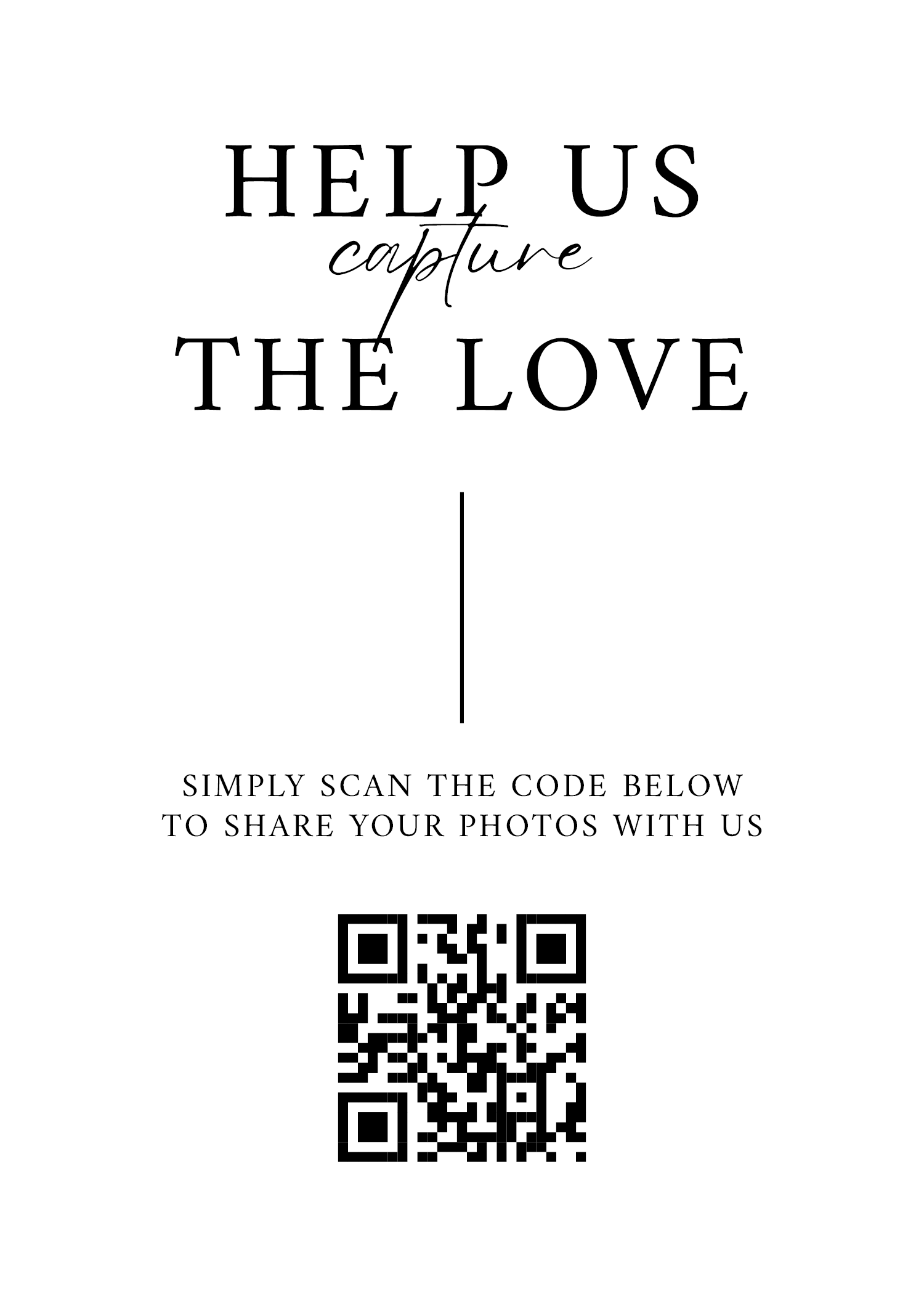 Make it easy for guests to scan your wedding QR code with stylish tabletop signs. Perfect for placing on welcome tables, at the bar, or beside your guestbook station.