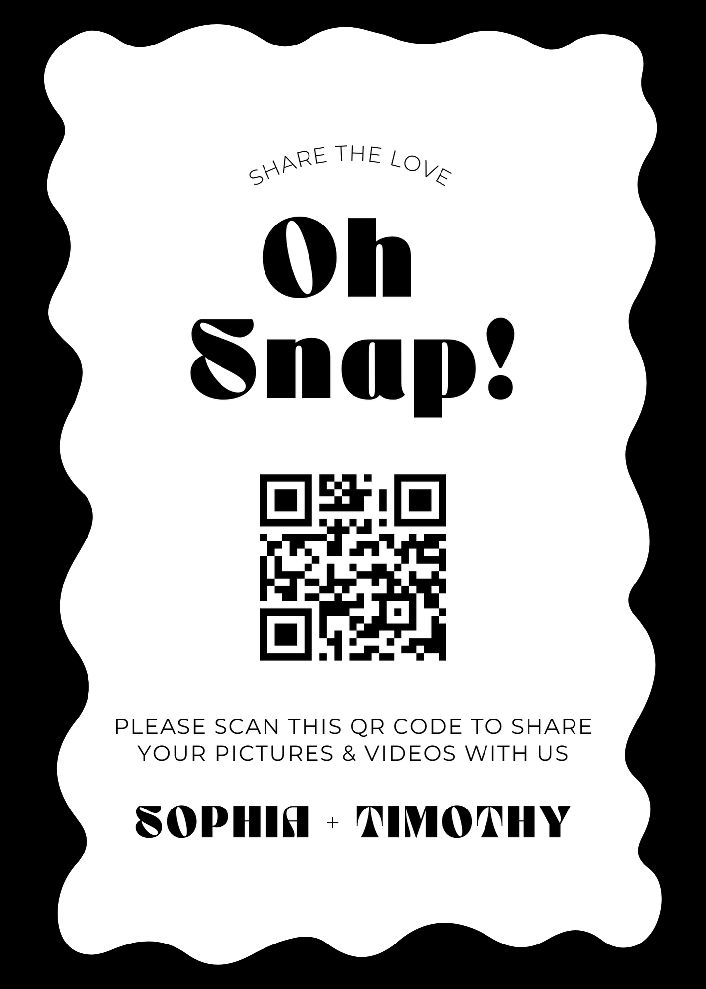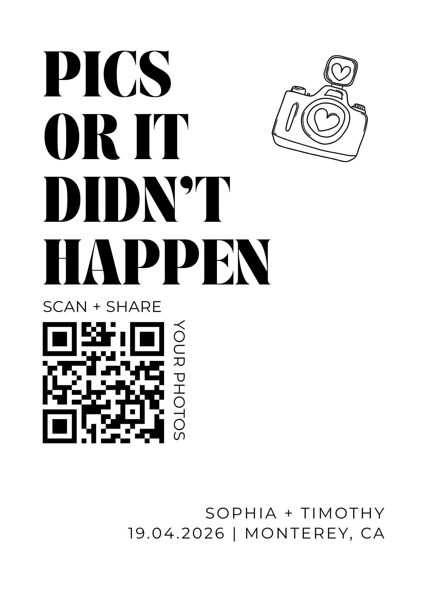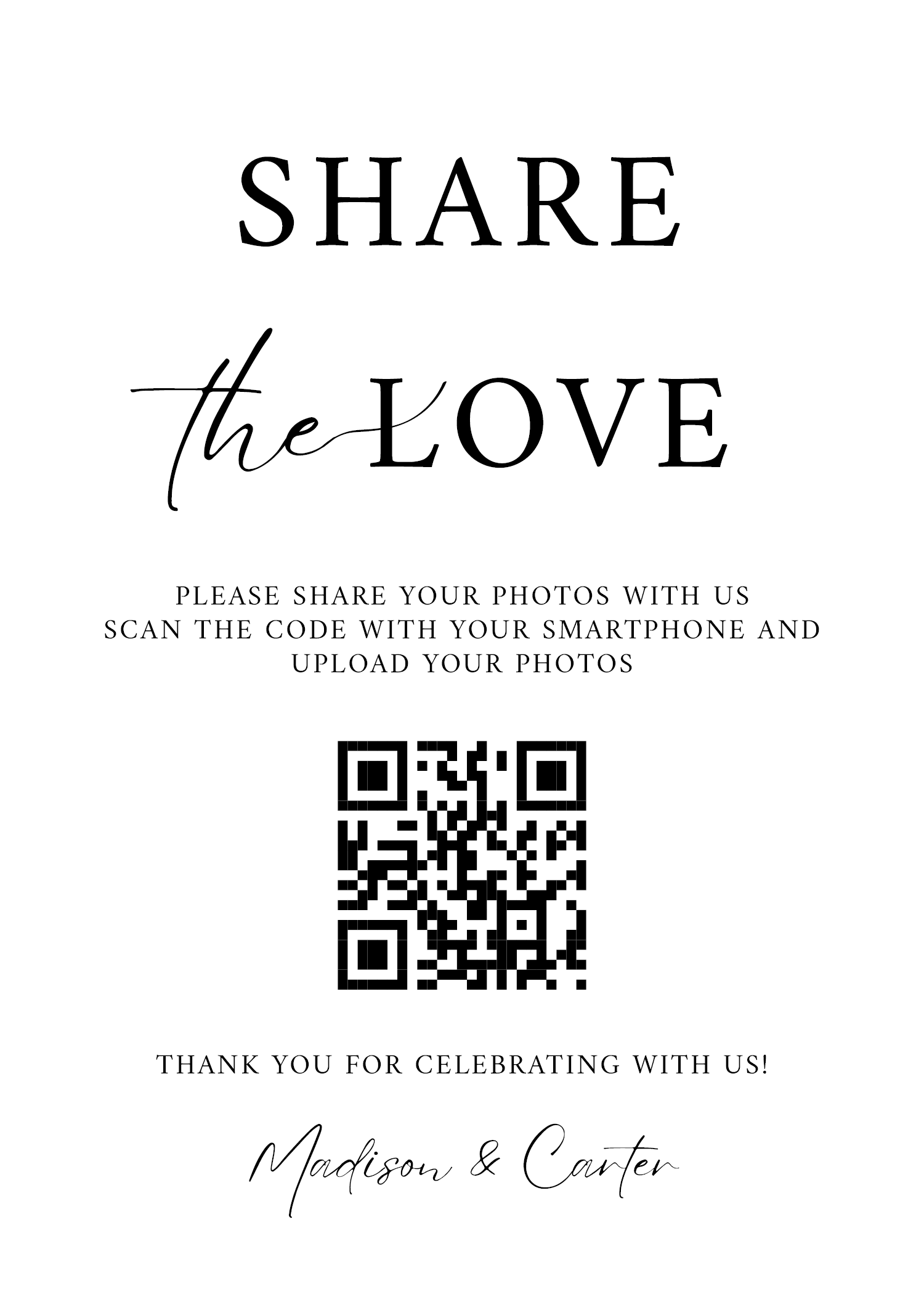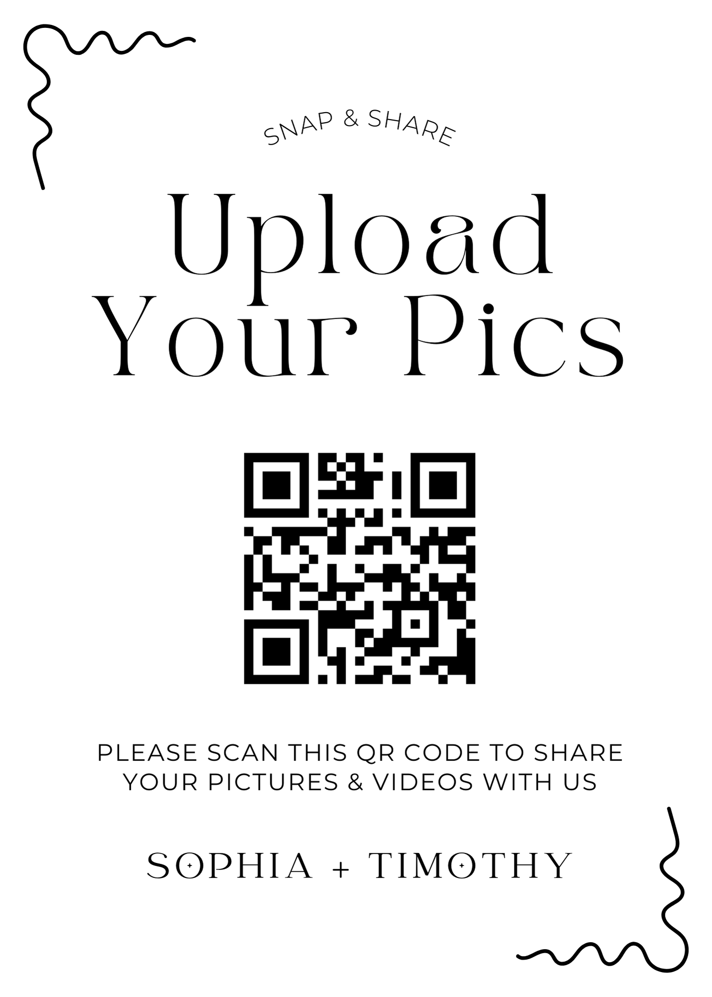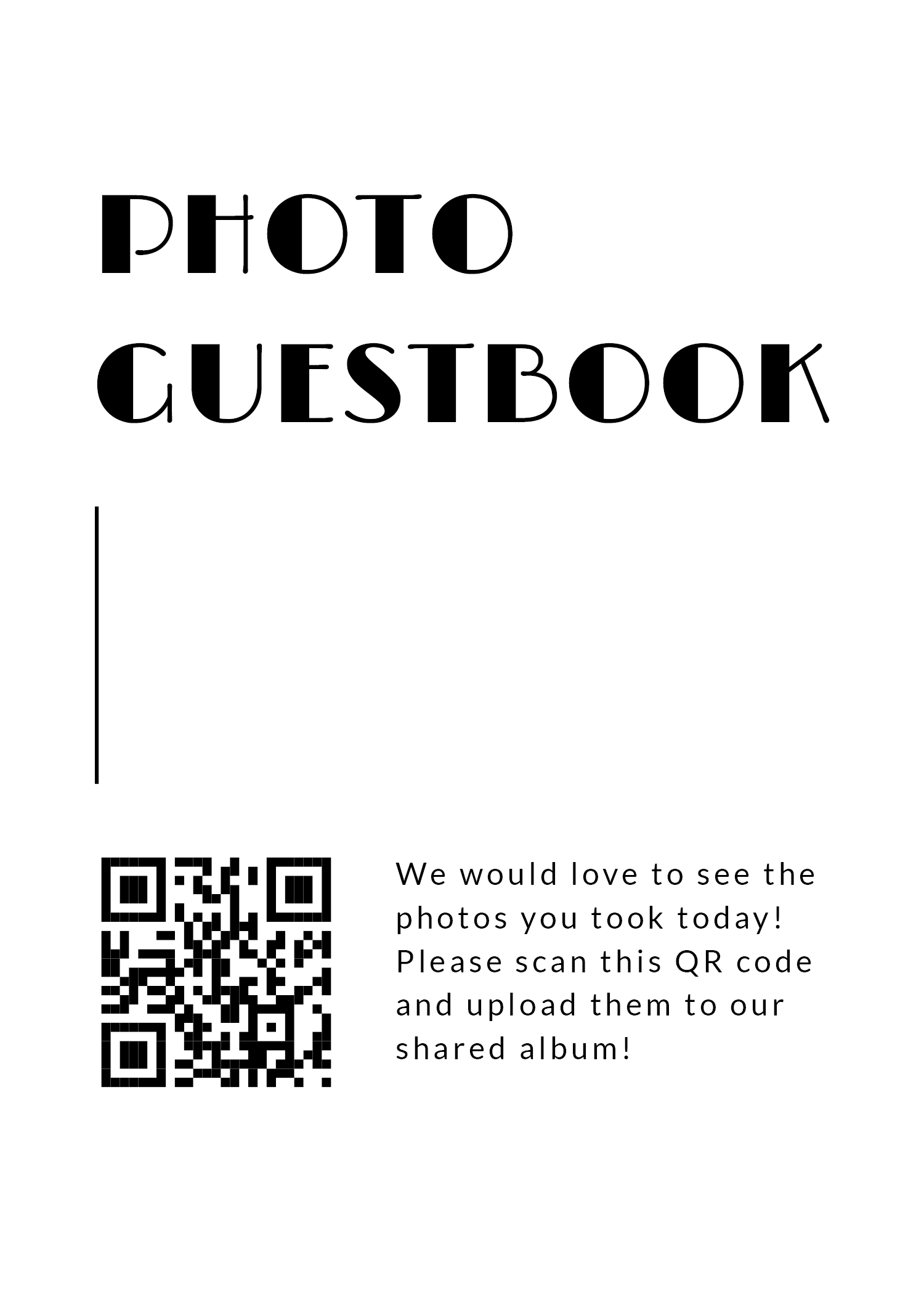 Browse professionally designed printable templates for your wedding QR code. Whether you're displaying your RSVP link, photo upload gallery, or audio guestbook, these signs make it easy for guests to scan and participate. Download, customize, and print in minutes.